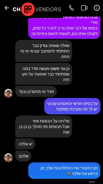 בנוסף, בכל נושא שקשור להזמנות או מוצרים, יש לך גם מענה ישיר מהספקים עצמם.