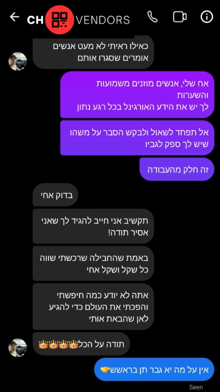 מרגע שיצרת קשר עם ספק – הקשר הזה שלך לכל החיים.